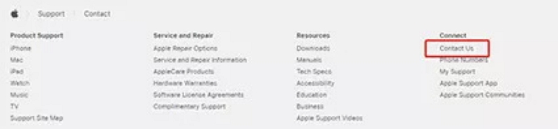 步骤一:转到 Apple 支持页面底部,然后单击“联系我们”。