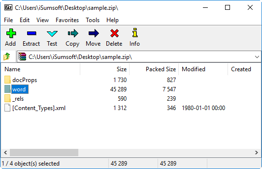 步骤 3:使用 7-ZIP 或计算机上安装的任何其他 ZIP 软件打开 .zip 文件,然后打开单词里面的文件夹。