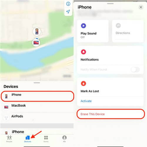 “查找我的”应用程序可以帮助您远程将 iPhone 恢复至出厂设置,从而从设备中删除“屏幕时间”设置。如果“查找我的 iPhone”已启用,并且您可以访问其他 Apple 设备(例如 iPad 或 Mac),则可以使用此方法。