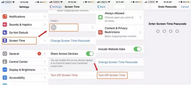 现在,让我们深入研究使用 4 位密码在 iPhone 上禁用家长控制的过程。在这种情况下,有两种不同的方法需要考虑。可以通过以下两种方式规避家长限制:直接通过孩子的 iPhone,或利用家长的 iPhone。