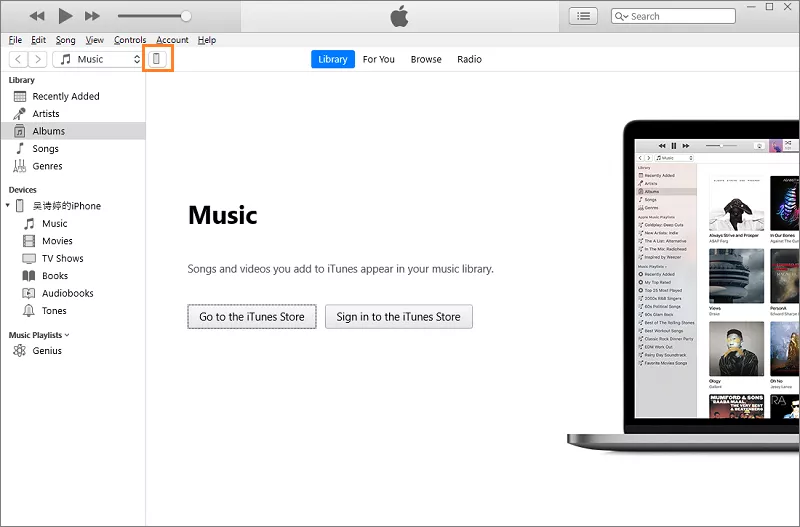步骤2:在 iTunes 屏幕中,找到并单击设备图标。