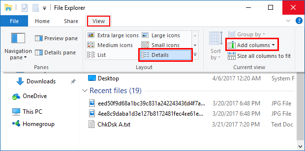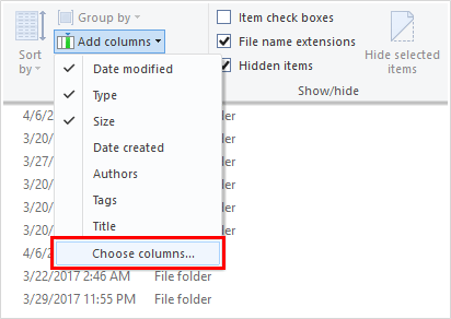 您可以使用以下步骤添加或删除列来修改文件资源管理器: