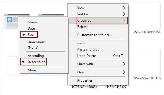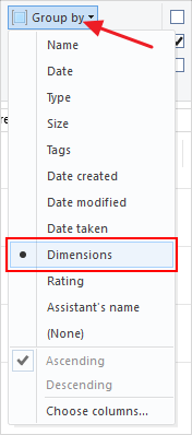 步骤 3:选择按以下方式对该文件夹中的项目进行分组上升(默认)或下降带有所选详细信息的订单。