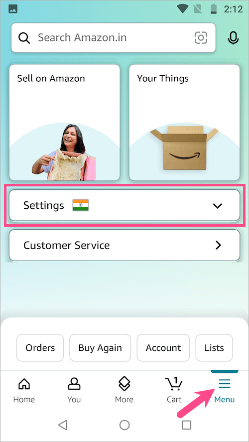 - 在亚马逊应用程序中,点击菜单右下角的选项卡。