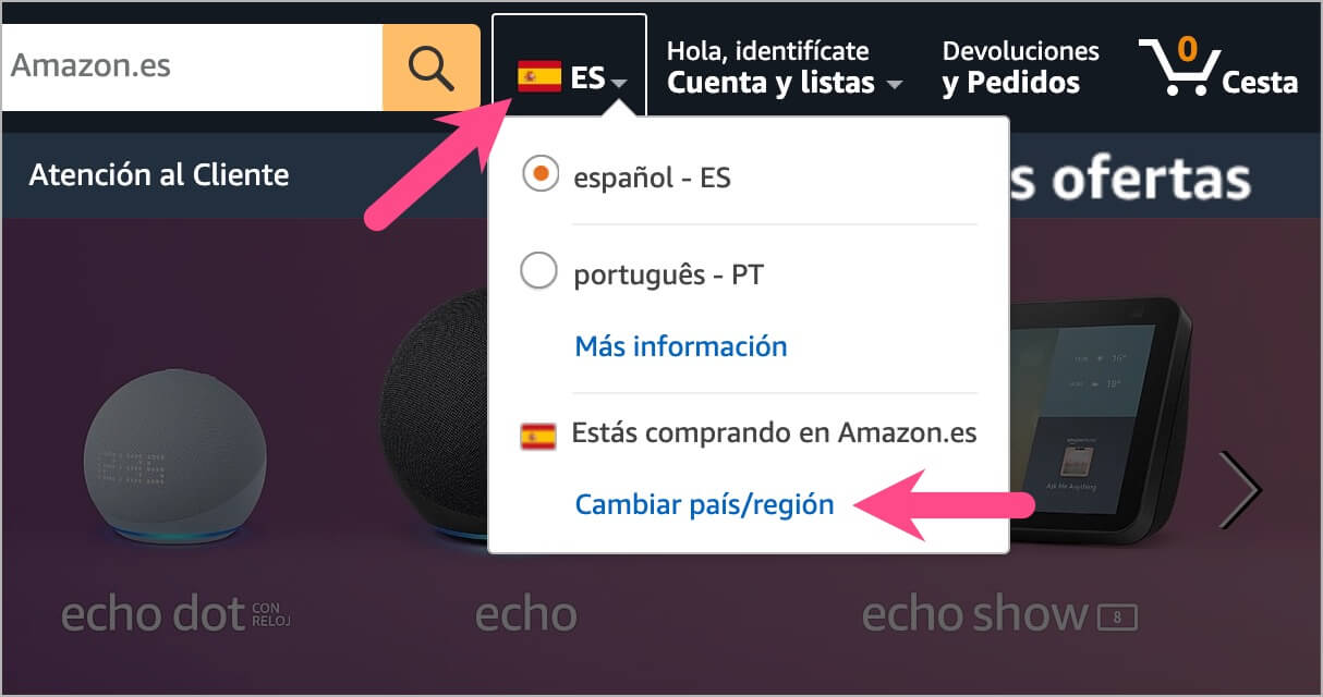 现在让我们看看如何在不同平台上将亚马逊语言从西班牙语更改为英语。