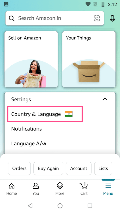 按照以下步骤将亚马逊应用程序上的语言从西班牙语更改为英语。