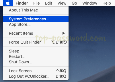 - 单击菜单栏中的“Apple”徽标,然后选择系统偏好设置。