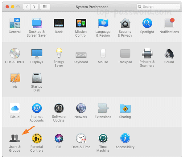 - 当“系统偏好设置”窗口打开时,单击用户和组图标。