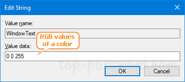 如果您还需要更改标题栏文本颜色,只需使用相同的方法更改以下注册表设置的RGB值: