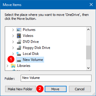 步骤 5:浏览并选择要将 OneDrive 文件夹移动到的位置,然后单击移动。