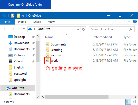 第12步:点击打开我的文件夹中的 OneDrive。您将看到您的 OneDrive 文件夹现在位于新位置同步您选择的文件夹。