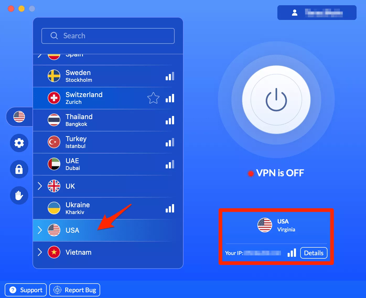 当您需要更改位置但没有特定的流量目的地时,使用此功能会很有帮助。事实是,VPN 服务器位置越近,连接速度就越快。因此,这是在打开 VPN 的情况下执行一些流量密集型活动(例如在线游戏)的最佳方式。