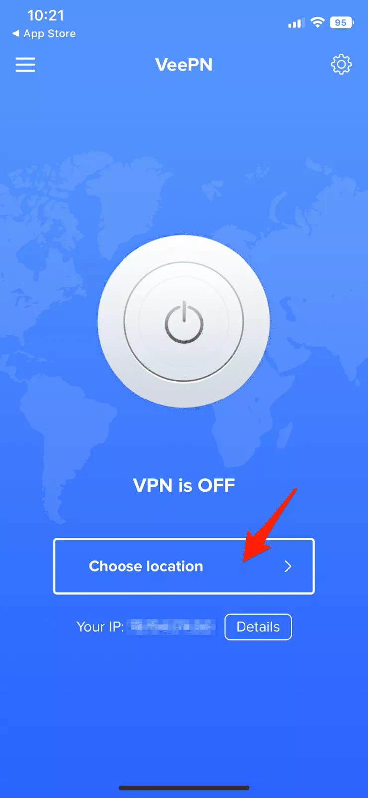 - 选择首选的服务器位置。 VeePN 在 60 个国家/地区的 89 个地点提供超过 2,500 台服务器,从英国、美国、德国到越南、马来西亚和阿联酋。