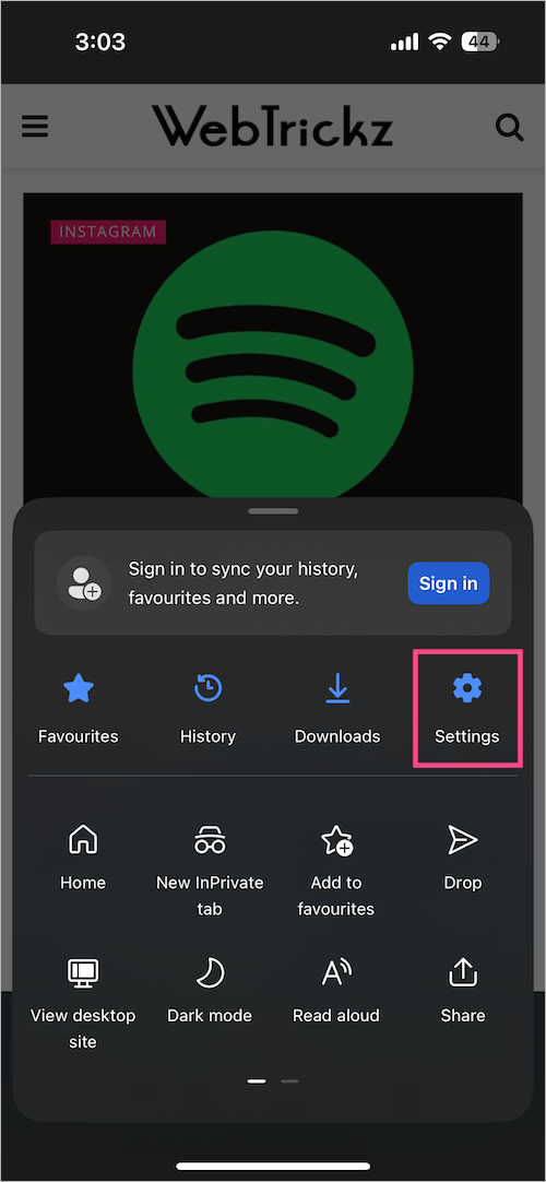 - 单击三点菜单并选择设置。
