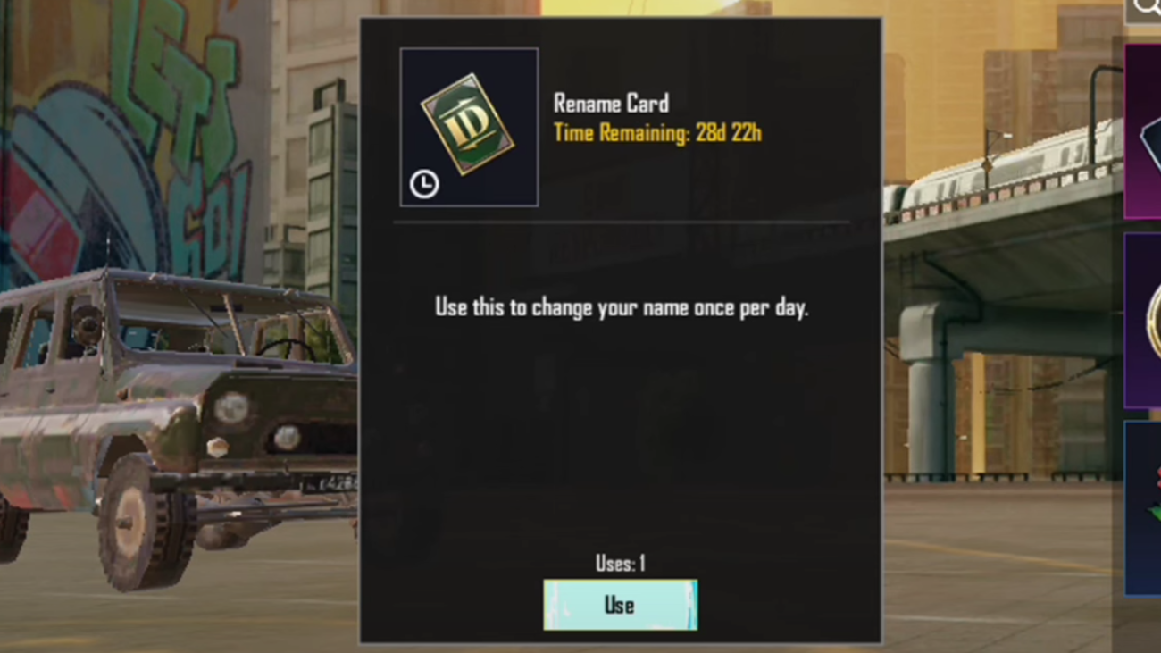 - 现在,前往游戏内商店,找到重命名卡,然后使用您获得的 UC 进行购买。