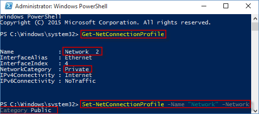 Set-NetConnectionProfile -名称“网络”-NetworkCategory private