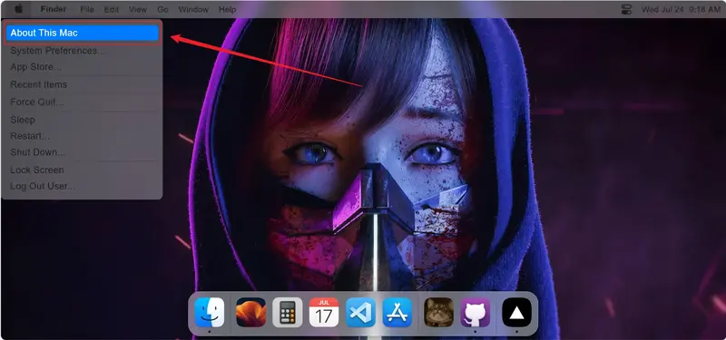 (一个)。单击左上角的 Apple 图标,然后选择“关于本机”。