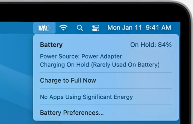 1. 单击顶部菜单栏中的电池图标。如果未显示电池图标,请按照以下步骤显示电池图标: