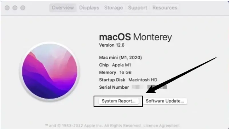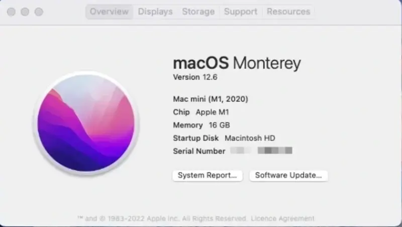 3. 在出现的窗口中,您将看到 macOS 版本,例如 macOS Monterey 12.0。