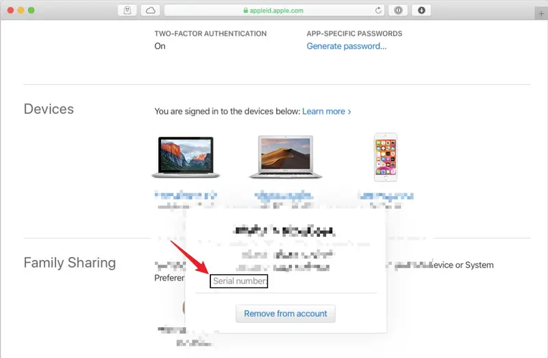 4. iCloud 帐户:如果您已将 Mac 连接到 iCloud 帐户,则可以登录 Apple ID 页面(appleid.apple.com) 来查找序列号。登录后,单击“设备”部分即可查看与该 Apple ID 关联的所有设备的序列号。