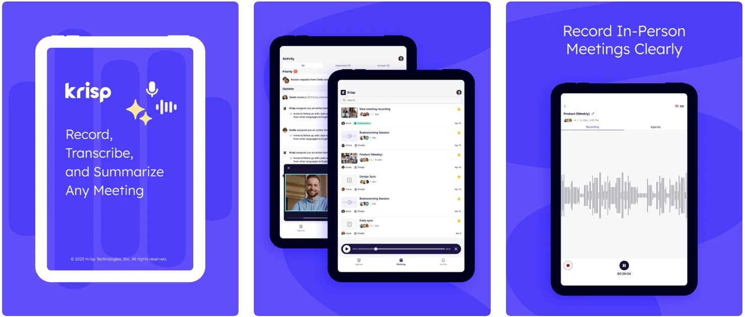 克里斯普是一款移动应用程序,专为需要随时随地录制和转录会议的专业人士而设计。它提供实时转录、人工智能驱动的摘要和噪音消除功能。 Krisp 支持面对面会议和虚拟会议,非常适合各种会议环境。