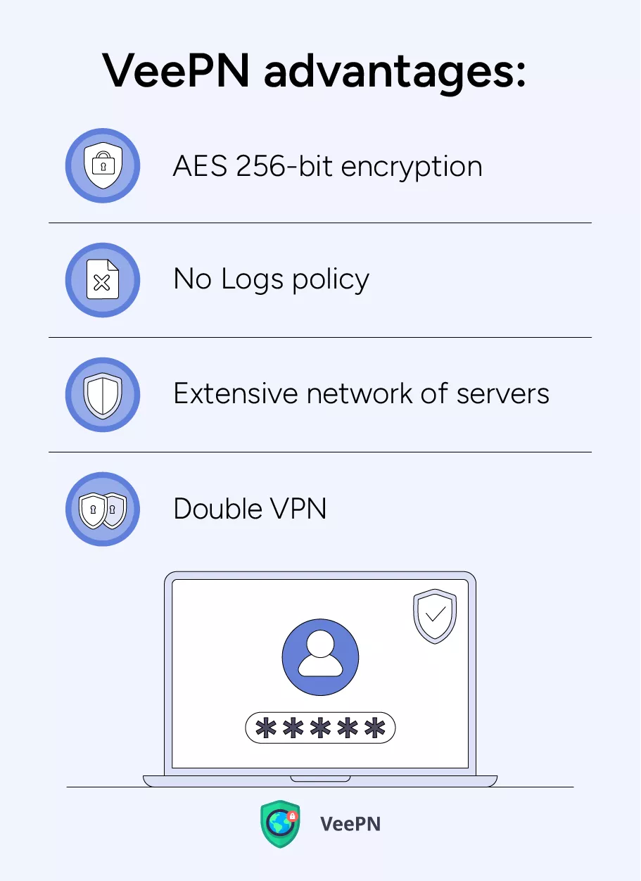 但要小心免费 VPN。免费 VPN 服务通常会收集您的个人信息并将其出售给广告公司等第三方,从而扼杀了互联网隐私的全部意义。相反,最好使用 VeePN 等高级 VPN 应用程序,因为它具有以下优势: