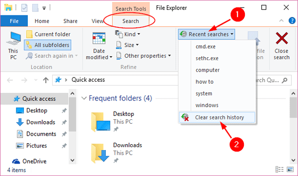 如何清除 Windows 10 / 8 文件资源管理器中的搜索历史记录