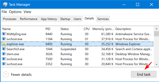 - 在清除缩略图缓存之前,您需要关闭文件资源管理器。打开任务管理器并切换到细节选项卡,右键单击 explorer.exe 并选择结束任务。