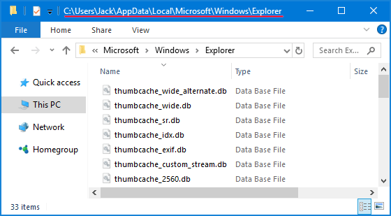 在这里你会看到很多像thumbcache_2560.db这样的文件。如果您能够删除它们,Windows 10 将在需要时自动重新创建新的缩略图。