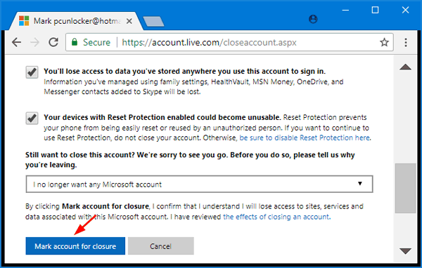 第 2 部分:永久关闭您的在线 Microsoft 帐户