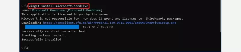 步骤2:类型winget uninstall Microsoft.OneDrive