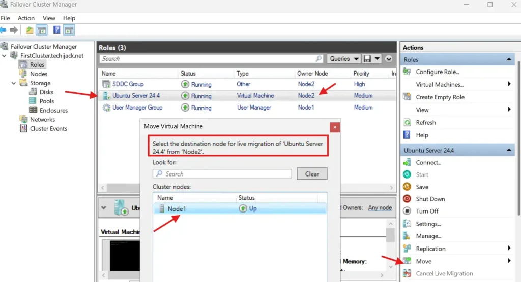 此外,如果您的 VM 已创建,您可以测试从 Node1 到另一个节点的实时迁移,反之亦然。