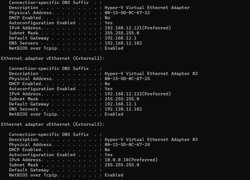 因此,为 Node1 和 Node2 虚拟机分配了 3 个虚拟网卡