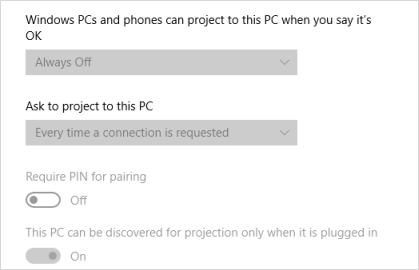 如果禁用此选项,请参阅本指南以启用投影到此 PC 的功能。