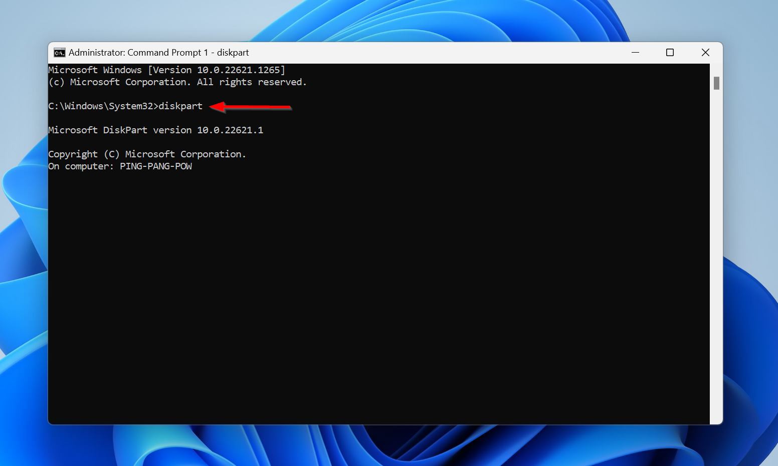 - 在控制台中,输入磁盘部分并按 Enter 键。