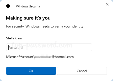 - 输入您的 Microsoft 帐户密码(如果您为 Microsoft 帐户启用了无密码登录,则输入您的 PIN),然后单击好的。
