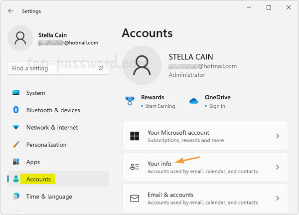 - 按视窗键+我调出“设置”应用程序。选择账户从左侧窗格中,然后单击您的信息在右侧窗格中。