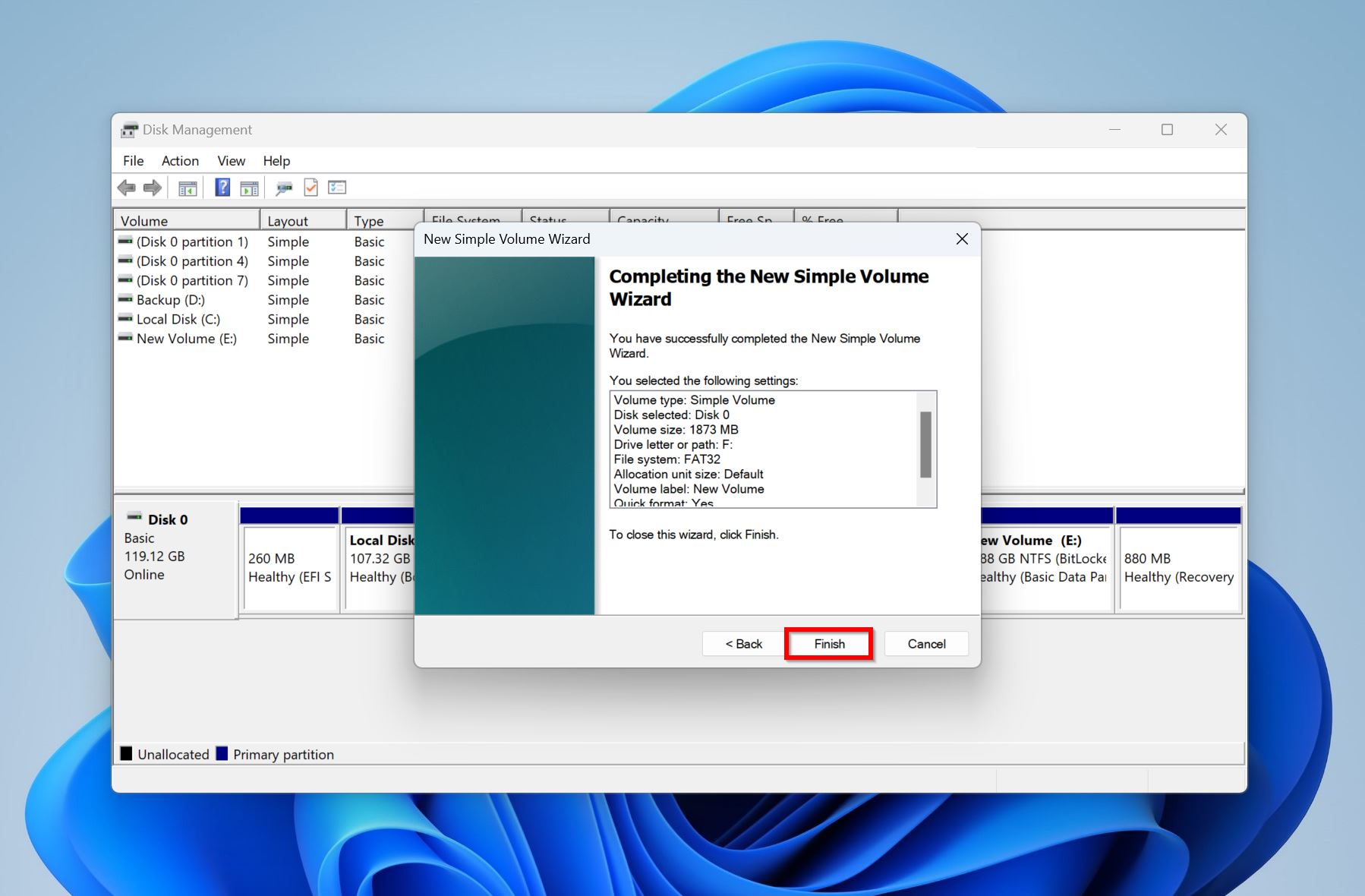 请记住,Windows 将 FAT32 的分区大小限制为 32 GB。如果您想将更大的存储空间转换为 FAT32,您需要使用第三方工具或创建多个 32 GB 分区。