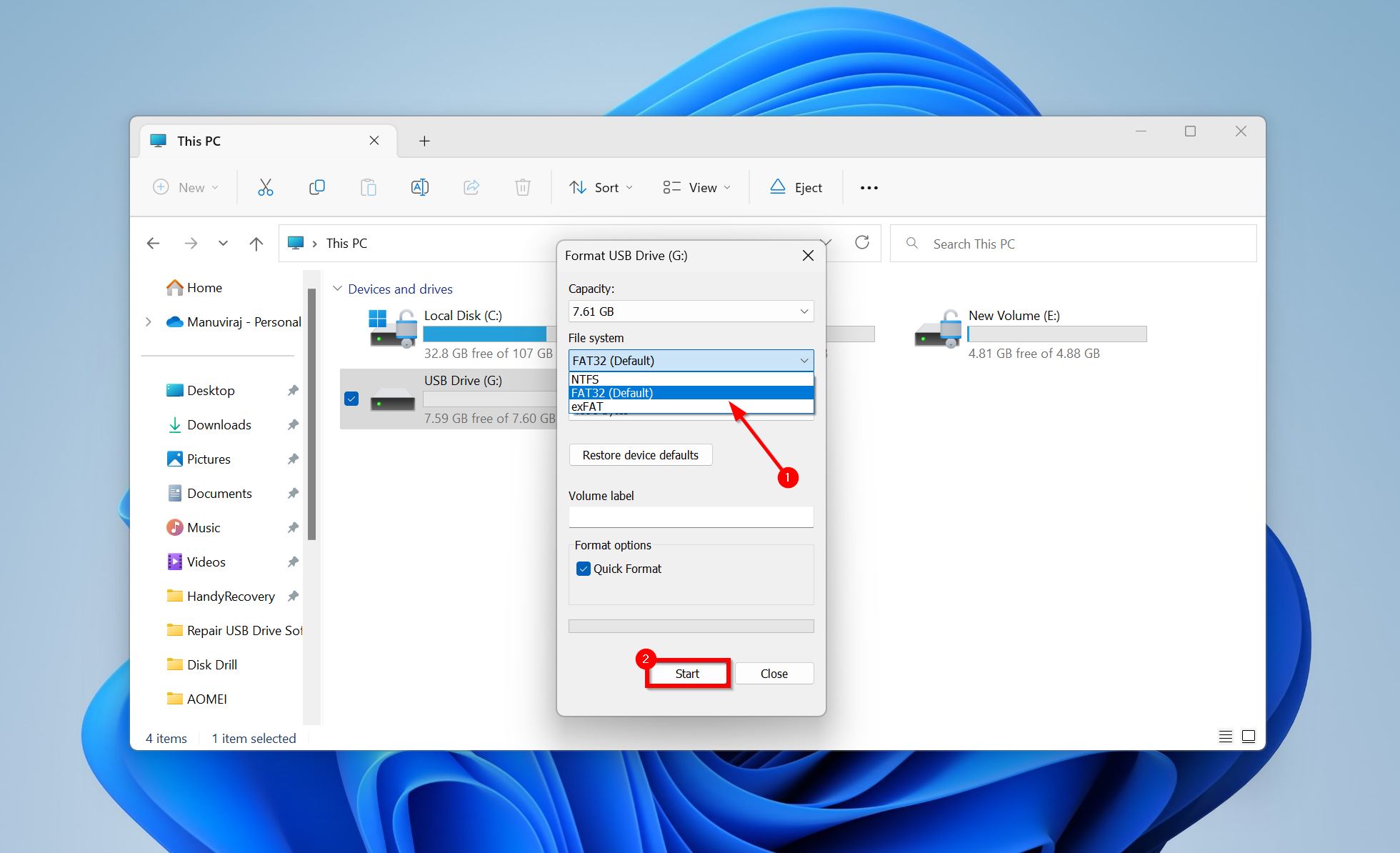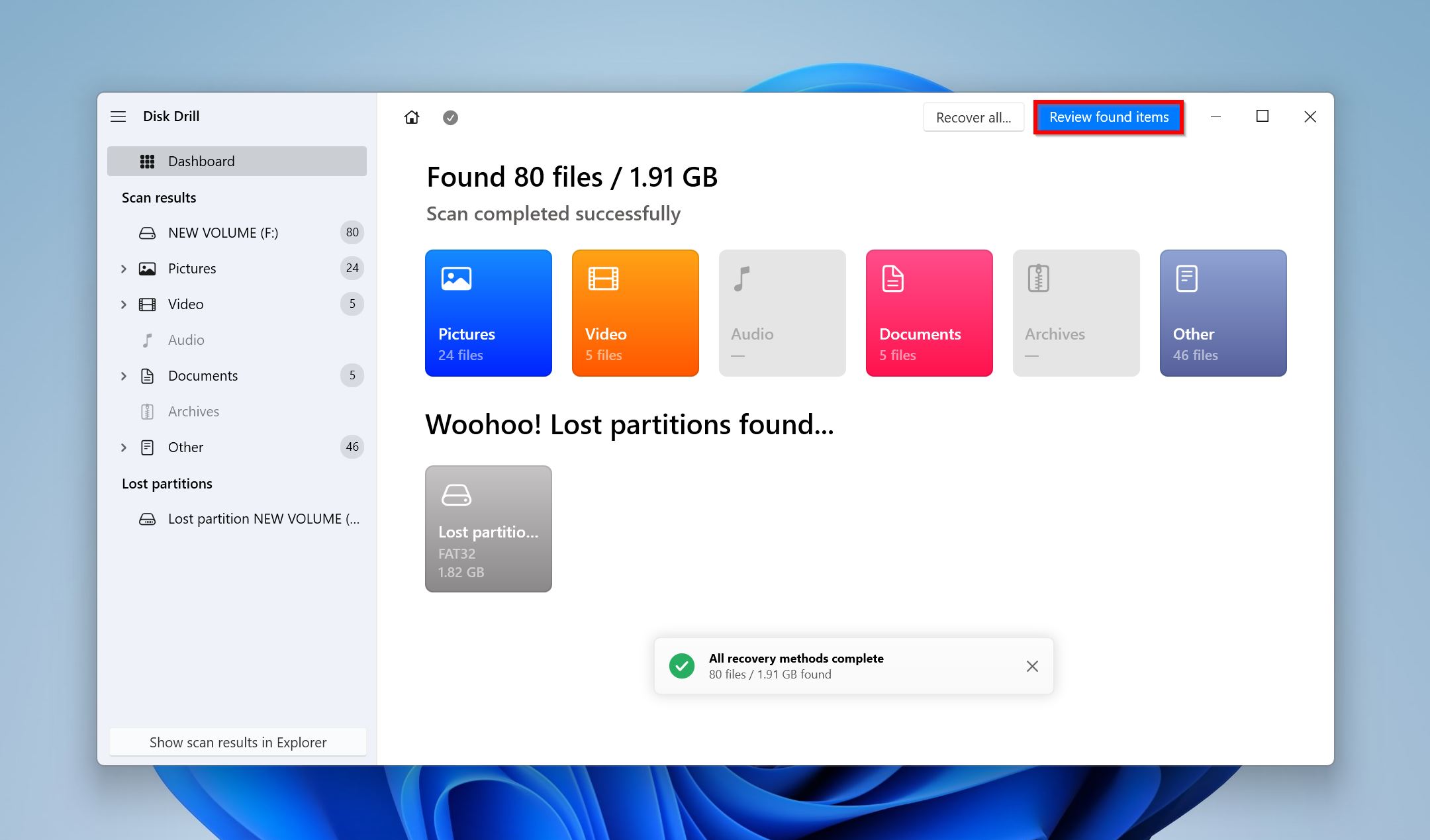 以下是如何使用 CMD 或 Windows 资源管理器结合 Disk Drill 将驱动器从 NTFS 转换为 FAT32,而不丢失数据: