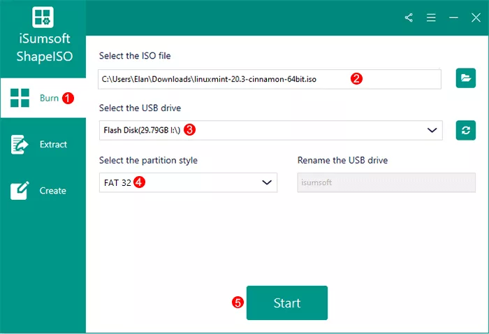 方式1:使用iSoft ShapeISO创建Linux Mint Live USB