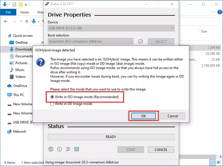 方式2:使用Rufus创建Linux Mint可启动USB
