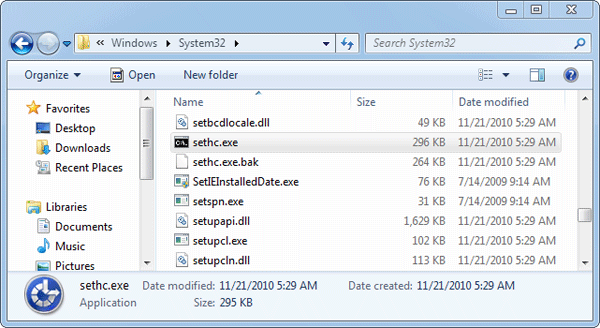 - 制作粘滞键应用程序 (c:\windows\system32\sethc.exe) 的备份副本,然后将 sethc.exe 替换为 cmd.exe。如果您尚未获得 sethc.exe 的所有权,则可能会收到“访问被拒绝”错误。