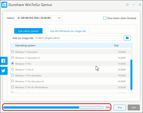 方法 1 — 使用 iSunshare WinToGo Genius 创建 Windows 11 可启动 USB