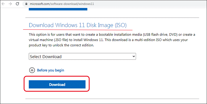 步骤一:前往微软官网下载Windows 11 ISO镜像并保存到您的计算机上。