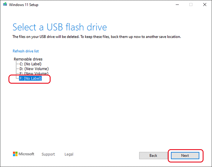 第5步:然后,您可以从列表中选择 USB 驱动器,然后单击“下一步”下载您的 Windows 11 版本。