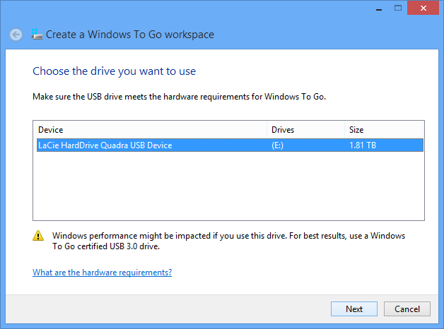 Windows To Go Creator仅在Windows 8的Enterprise Edition中可用。但是,只要您拥有Windows 8 ISO Image,就可以在任何版本的Windows中创建Windows go usb drive的Windows。