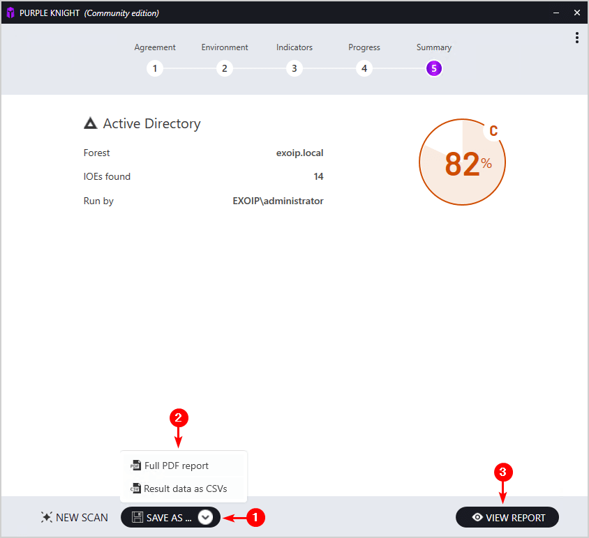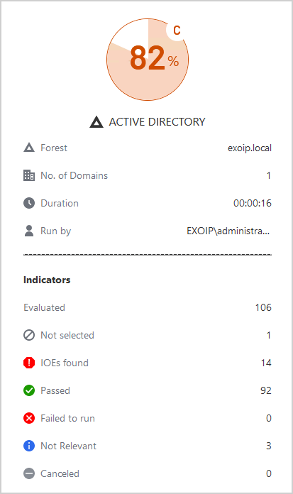 - 扫描完成并显示摘要活动目录总分,包括多少个IOE(暴露指标)被发现