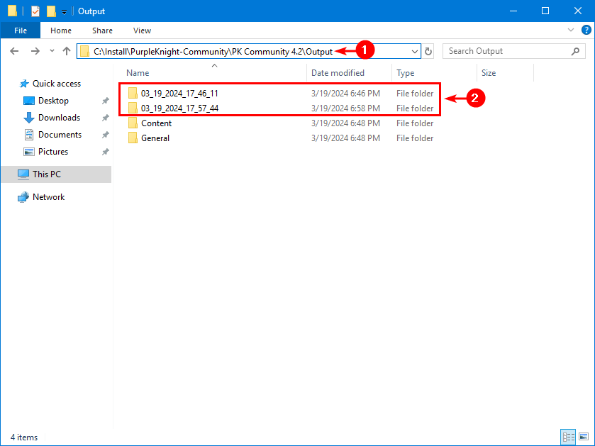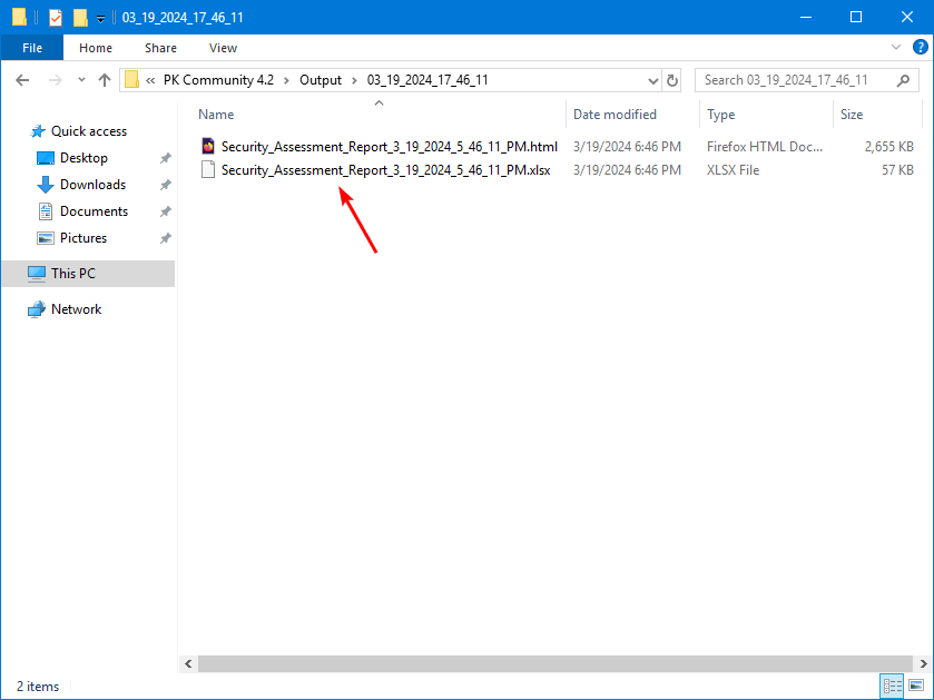 - 它会自动将包含所有指标结果的 HTML 报告和 Excel 清单保存到 Purple Knight输出文件夹(在我们的示例中,我们已运行报告两次)