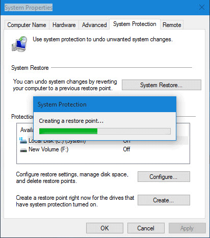 第7步:正在创建还原点,请稍候。这可能需要几分钟的时间,具体取决于驱动器的大小。