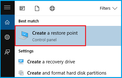 步骤1。打开开始, 类型创建还原点在搜索空白处。